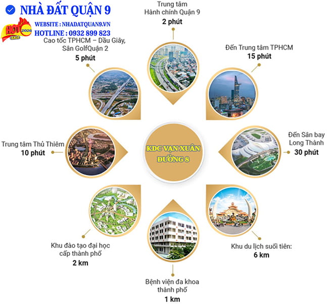 Khu vực có chất lượng dân trí cao, mức độ dân cư đông và phát triển nhiều tiện ích kèm theo. - Vạn Xuân Đường 8 còn kết nối nhanh chóng vào khu công nghệ cao Quận 9.